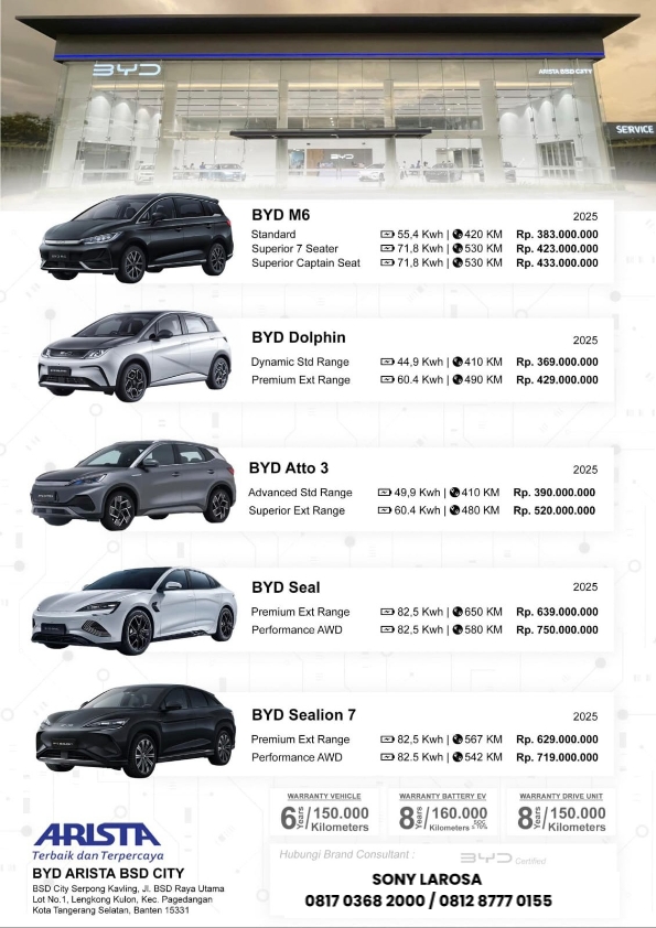 Terkini dan Terpercaya: Selamat Datang di website Bydtangerangbsd.id, Dealer Resmi BYD Arista BSD City - Tangerang ! Bersama Sony Larosa, dan Anda akan menemukan inovasi terbaru dari dunia mobil listrik. Jelajahi koleksi mobil kami, temukan solusi ramah lingkungan untuk mobilitas Anda. Terima kasih atas kunjungan Anda!